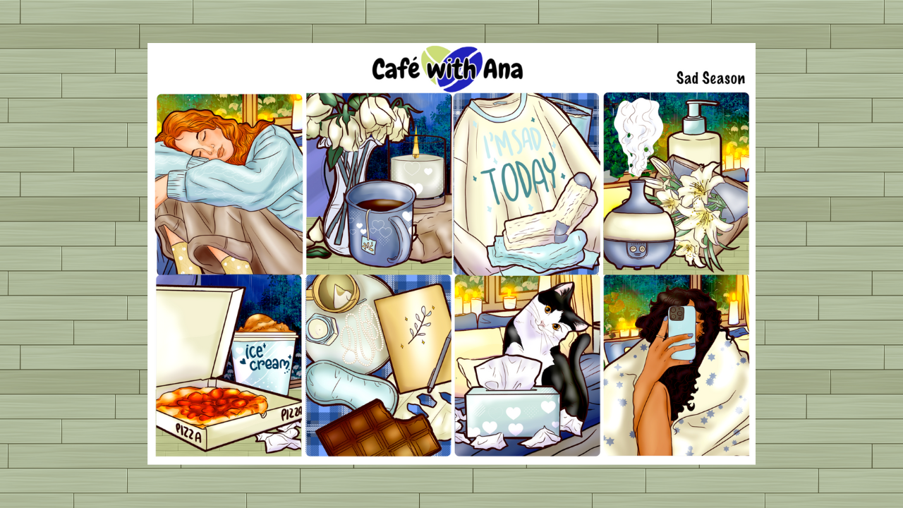 Stickers are kiss cut in either premium matte or glossy paper. Each sticker sheet measures 6.63" by 4.59" and are formatted to fit standard vertical planners sized 1.5" wide boxes/columns.
